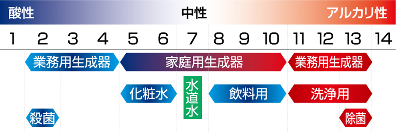 ※pHとは水素イオン濃度のことで1~6までを酸性、7~8を中性、9~14をアルカリ性と呼んでいます。