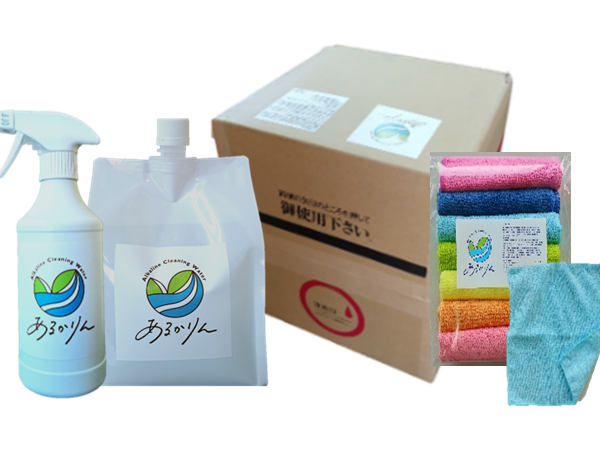 「あるかりん」は純水を独自技術で電気分解し生成したペットにも人にもやさしい次世代の洗浄・消臭クリーナーです。