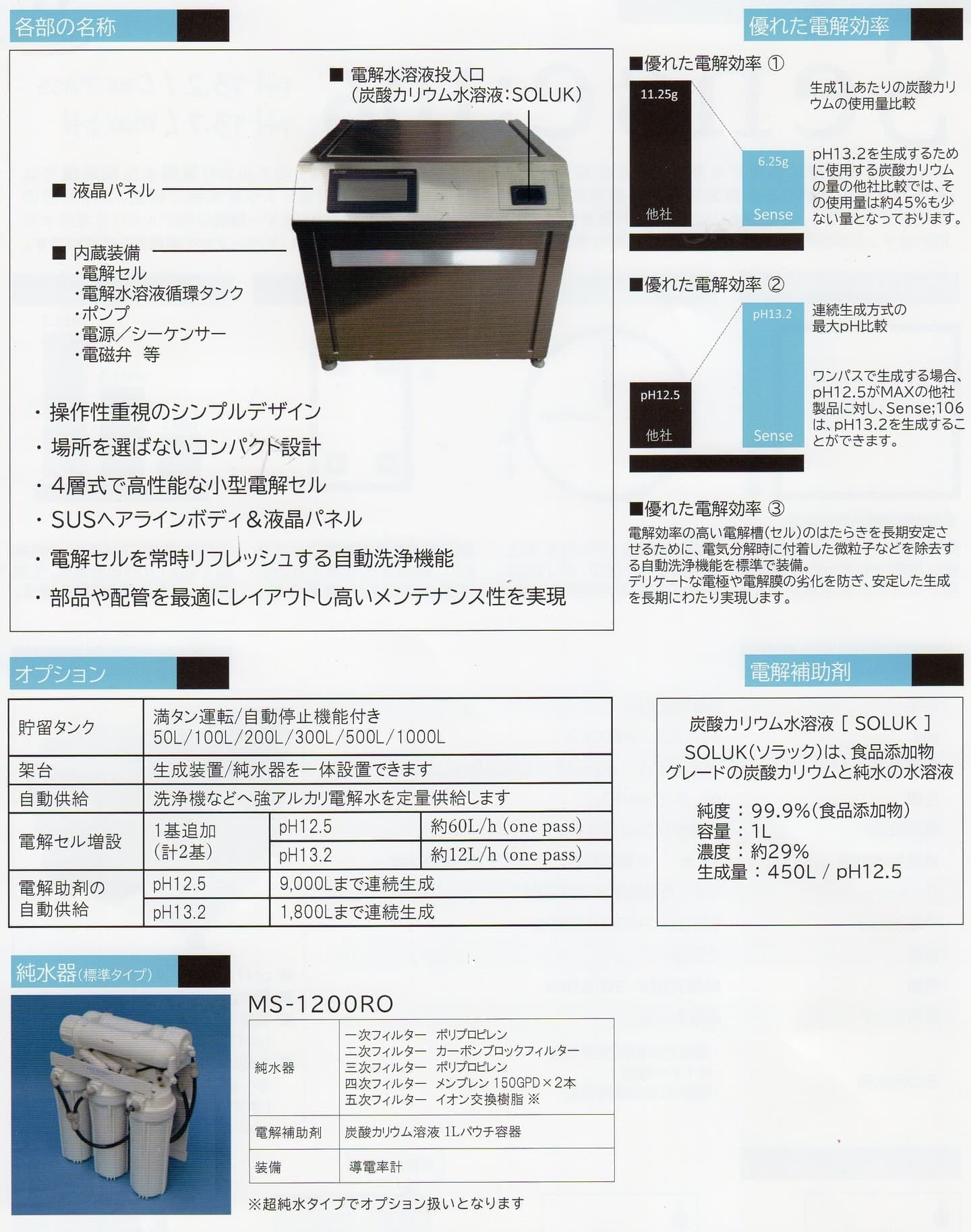 SENSE106/103 強アルカリ電解水生成装置